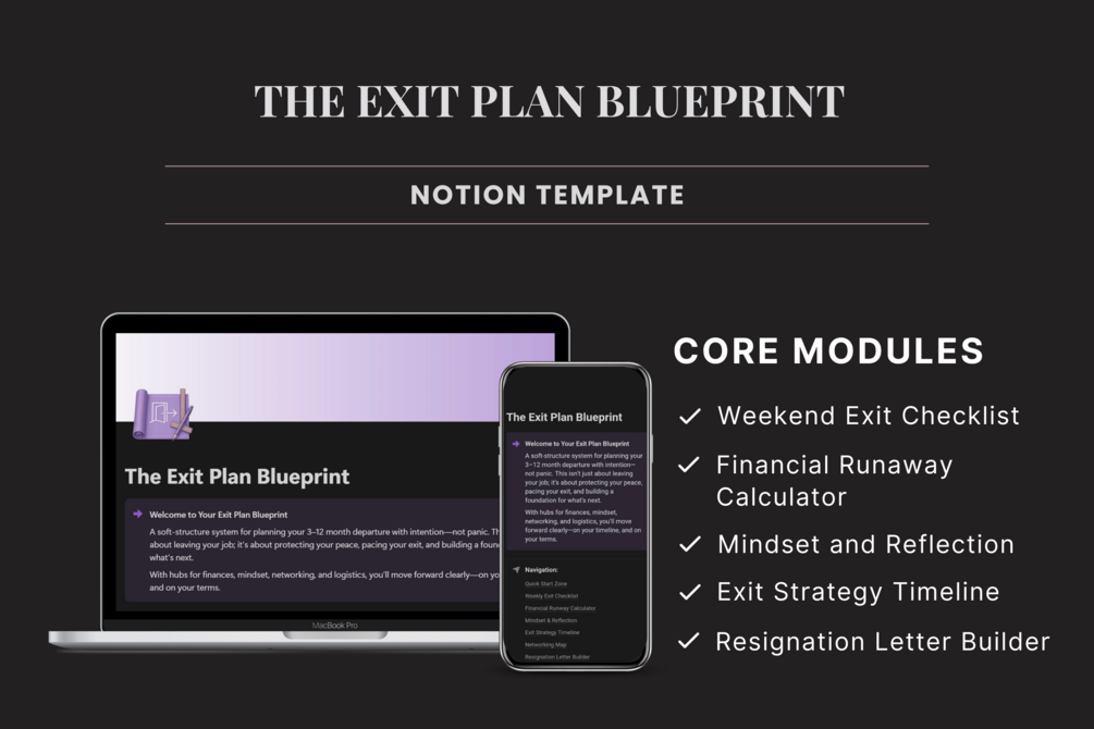 A calm, step-by-step system to leave your job without panic, burnout, or guesswork.