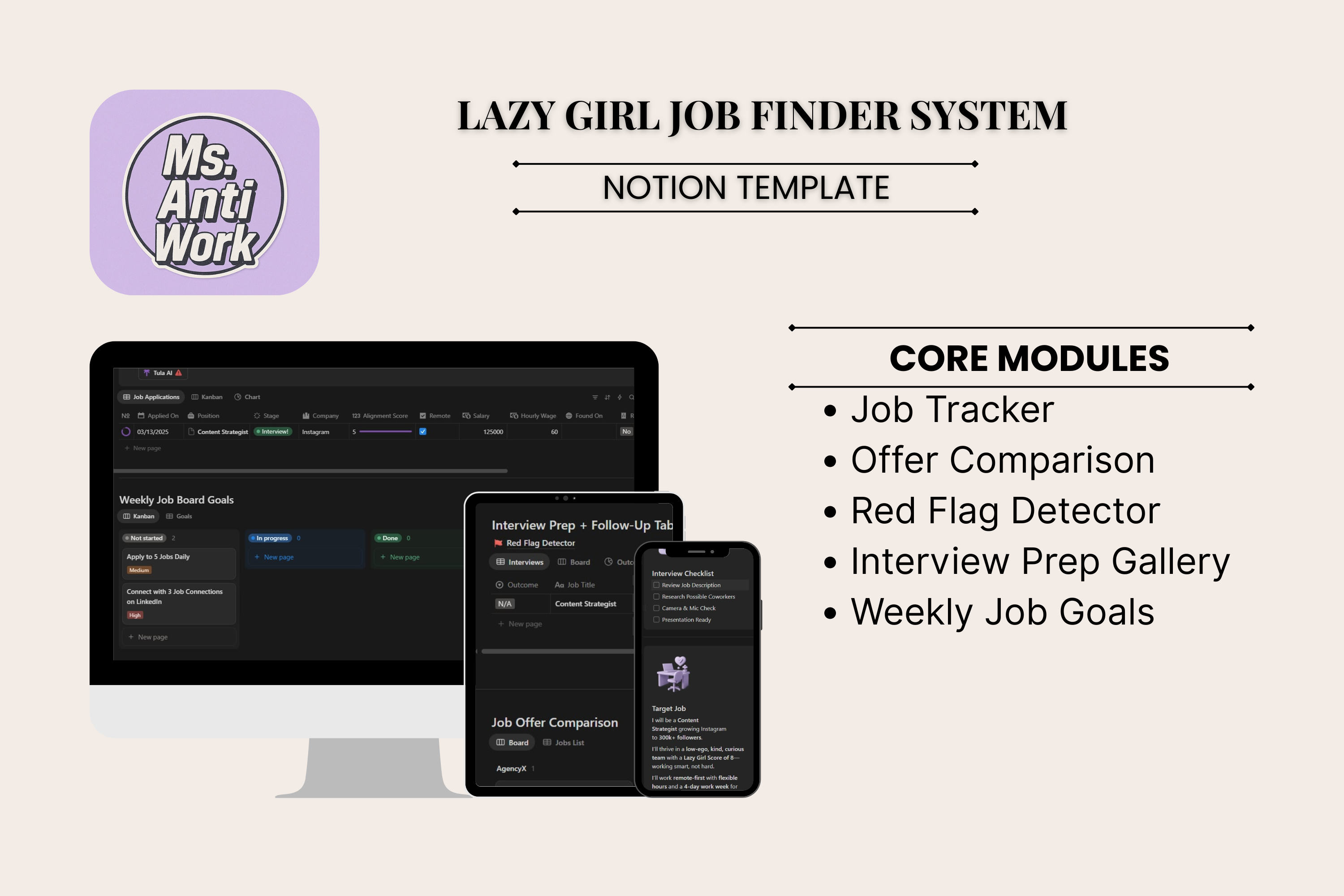 Paste a job listing and instantly see deal-breakers highlighted with a Lazy Girl Probability Score (0–10). -